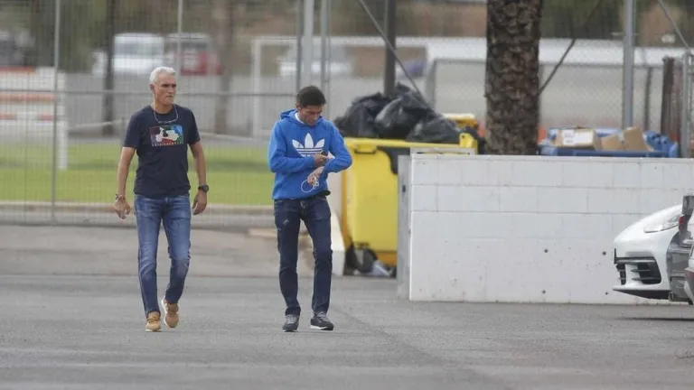 Diez minutos después de abandonar ambos las instalaciones de la ciudad deportiva llegó en coche Albert Celades, quien esta tarde dirige su primer entrenamiento, a puerta cerrada, y poco después el presidente del club, Anil Murthy.