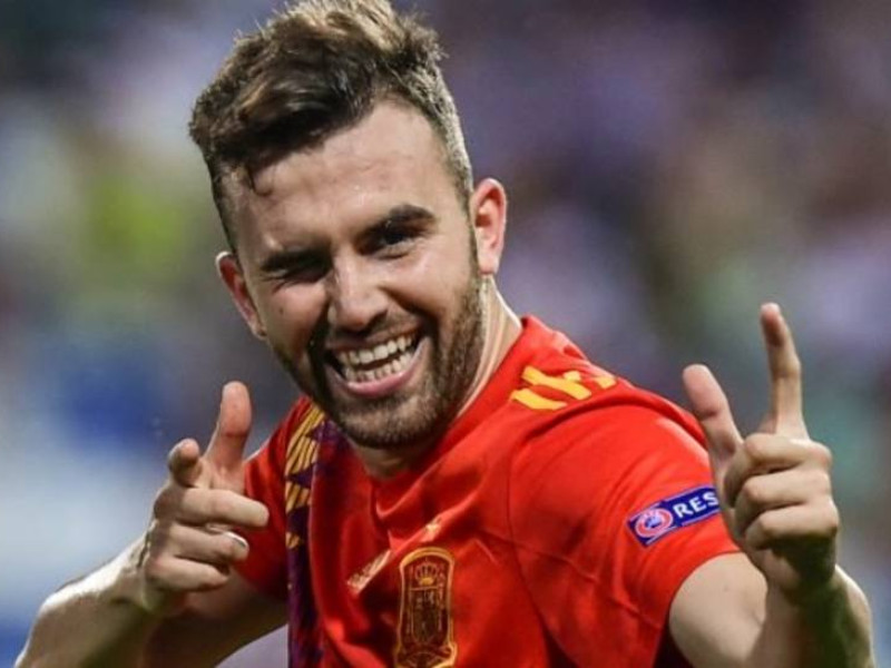 Borja Mayoral celebra un gol con la sub-21