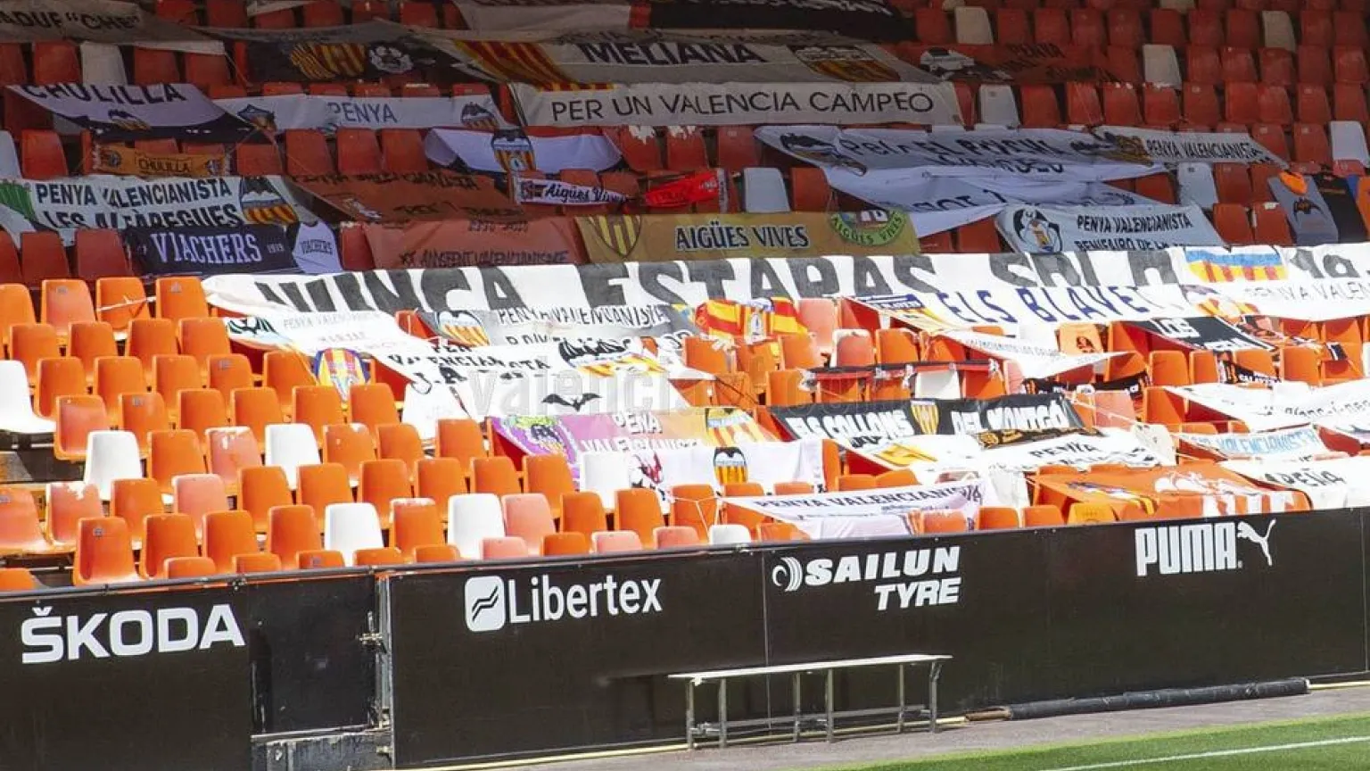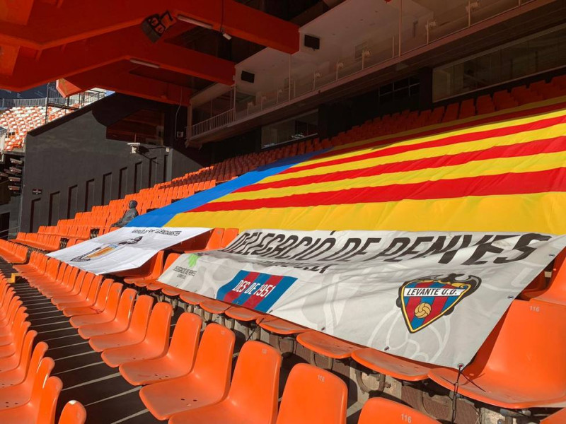 Tal y como explicaron el viernes pasado en Deportes COPE Valencia los presidentes de las peñas del Valencia CF y del Levante UD, Fede Sagreras y Mikel Barrachina, los aficionados han podido colocar en Mestalla sus camisetas, banderas, bufandas o elementos con simbología valencianista para animar al equipo y mostrarle su apoyo, aunque no puedan estar físicamente. También se ha reservado una zona para que los aficionados del Levante UD puedan animar a sus futbolistas.