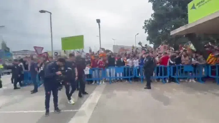 la expedición del Valencia CF entró en las instalaciones del aeropuerto de Manises poco antes de las 11:30 horas y