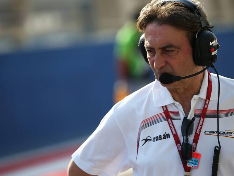 Logró pilotar un Fórmula 1 cuando Giancarlo Minardi le fichó en 1987. Llegó a competir en 21 Grandes Premios y posteriormente fue un hombre clave a la hora de descubrir las cualidades de Fernando Alonso y también de Marc Gené, quienes le deben la confianza que Campos depositó en ellos para que pudieran dar el salto al circo de las cuatro ruedas.