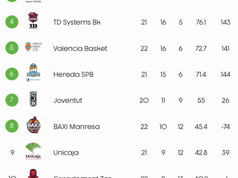 Con esta victoria, Valencia supera a San Pablo Burgos (que ha conseguido la Intercontinental) y podría superar mañana a TD Systems Baskonia si pierde en Tenerife y colocarse cuarto. Si son los de Dusko Ivanovic los vencedores, los 'taronja' se colocarán a sólo un triunfo del tercero. Impensable hace dos meses y medio.