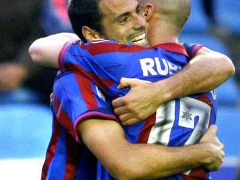 Rubiales y Salva celebran un gol en su etapa en el Levante UD