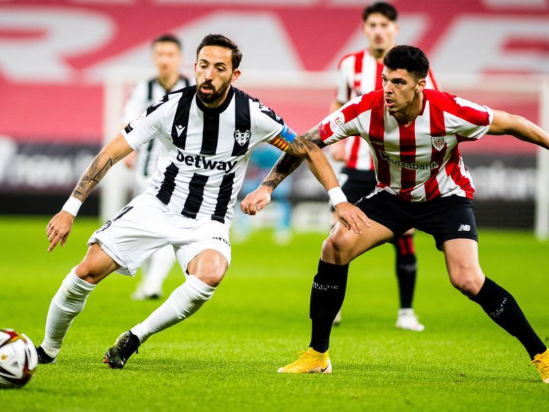 La eliminatoria de semifinales de la Copa del Rey entre el Athletic y el Levante se decidirá en la vuelta, en el Ciutat de Valencia, después del empate 1-1 en la ida en San Mamés con tantos de Gonzalo Melero, en la primera parte, e Iñigo Martínez, en la reanudación.