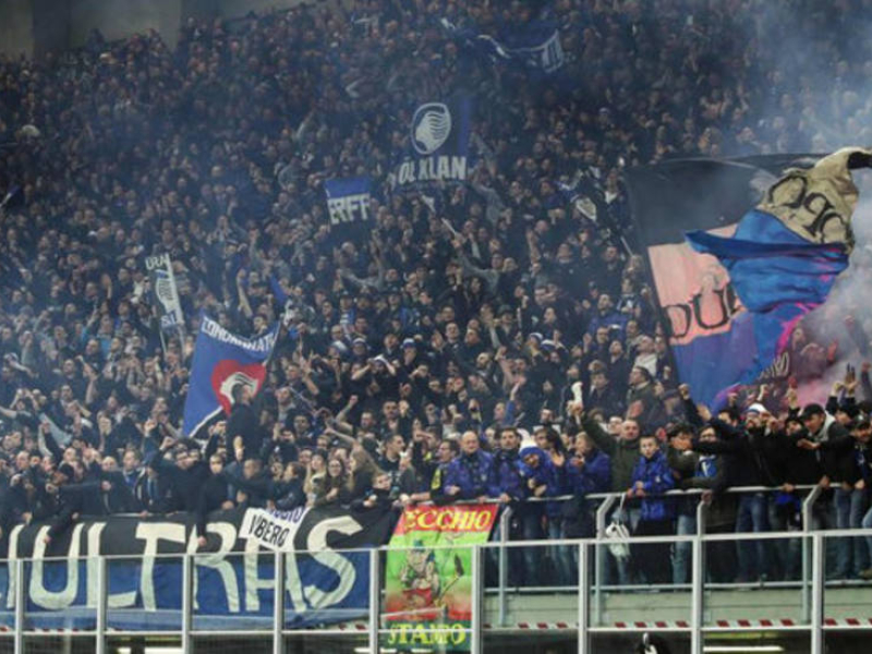 Bengalas en la zona de la afición de la Atalanta