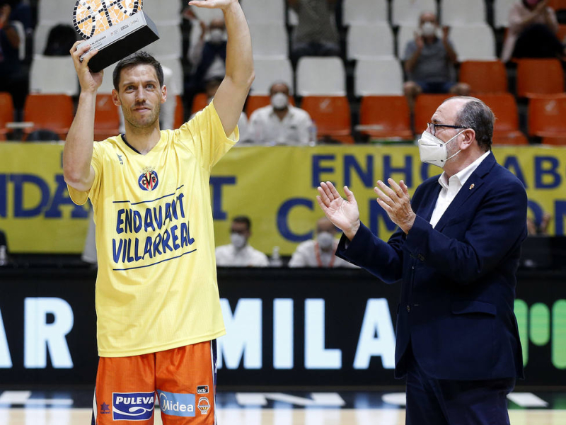 Van Rossom con el premio del esfuerzo y la camiseta de felicitación al Villarreal