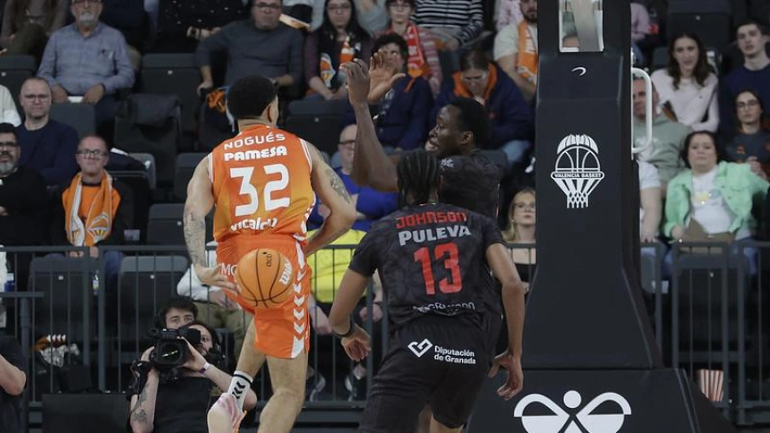 Para eso metió Pedro Martínez a Nogués, para subir una marcha. El escolta es diferencial en defensa y lee bien las transiciones. Enseguida, el marcador empezó a estirarse, 42-30, minuto 15. Nogués se fue al banquillo con la misión cumplida y una fuerte ovación del Roig Arena. Dos rebotes y dos asistencias, brecha provocada. Nogués. Con esa inercia, Granada empezó a dudar y a sufrir. Costello puso el más quince con el cuarto triple local, 52-37 a un minuto del descanso. Ruiz planteó una zona para frenar un poco y De Larrea la enchufó de tres, 55-39.