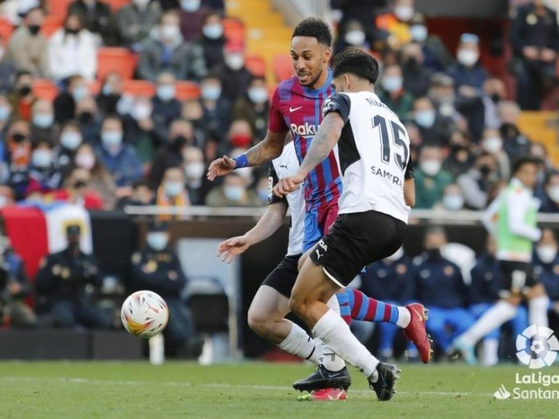 Goles: 0-1, m.22: Aubameyang. 0-2, m.31: Frenkie De Jong. 0-3, m.38: Aubameyang. 1-3, m.52: Carlos Soler. 1-4, m.63: Pedri.
