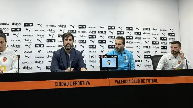 El director corporativo, Javier Solís, el entrenador Rubén Baraja, el capitán José Luis Gayà y la capitana del Valencia CF Femenino Marta Carro. Todos han coincidido en señalar la importancia de poner por delante, la vida y la situación de esas personas, al fútbol y de ahí la decisión que ha tomado esta mañana el club a primera hora de solicitar a LaLiga el aplazamiento del choque ante el Granada en Los Carmenes previsto para mañana.