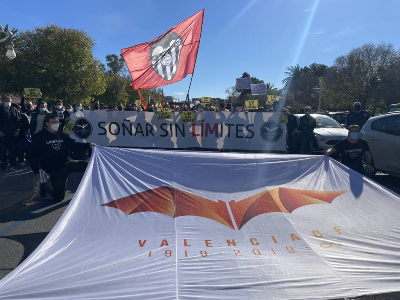 Más de 15.000 valencianistas han recorrido la manifestación cívica en contra de la gestión de Meriton, exigiendo la marcha del máximo accionista del Valencia CF