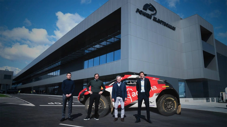 Power Electronics y Acciona | Sainz XE Team sellaron el acuerdo de patrocinio con un evento en el Campus Power Electronics en sus instalaciones de Llíria, donde Carlos Sainz recalcó la importancia de que la tecnología eléctrica siga avanzando: