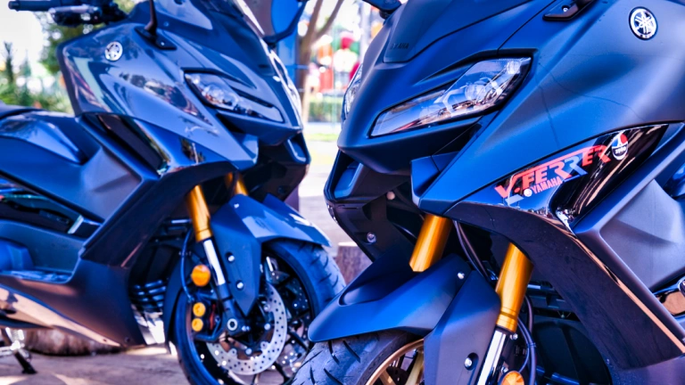 La nueva TMAX Tech MAX presenta una compacta carrocería totalmente nueva, con un asiento y unos reposapiés más largos, que aportan más comodidad en marcha. Su nuevo y agresivo frontal, y sus aerodinámicos alerones delanteros, dan lugar a un aspecto inspirado en las motos superdeportivas que acerca a la TMAX Tech MAX al mundo de las motos.