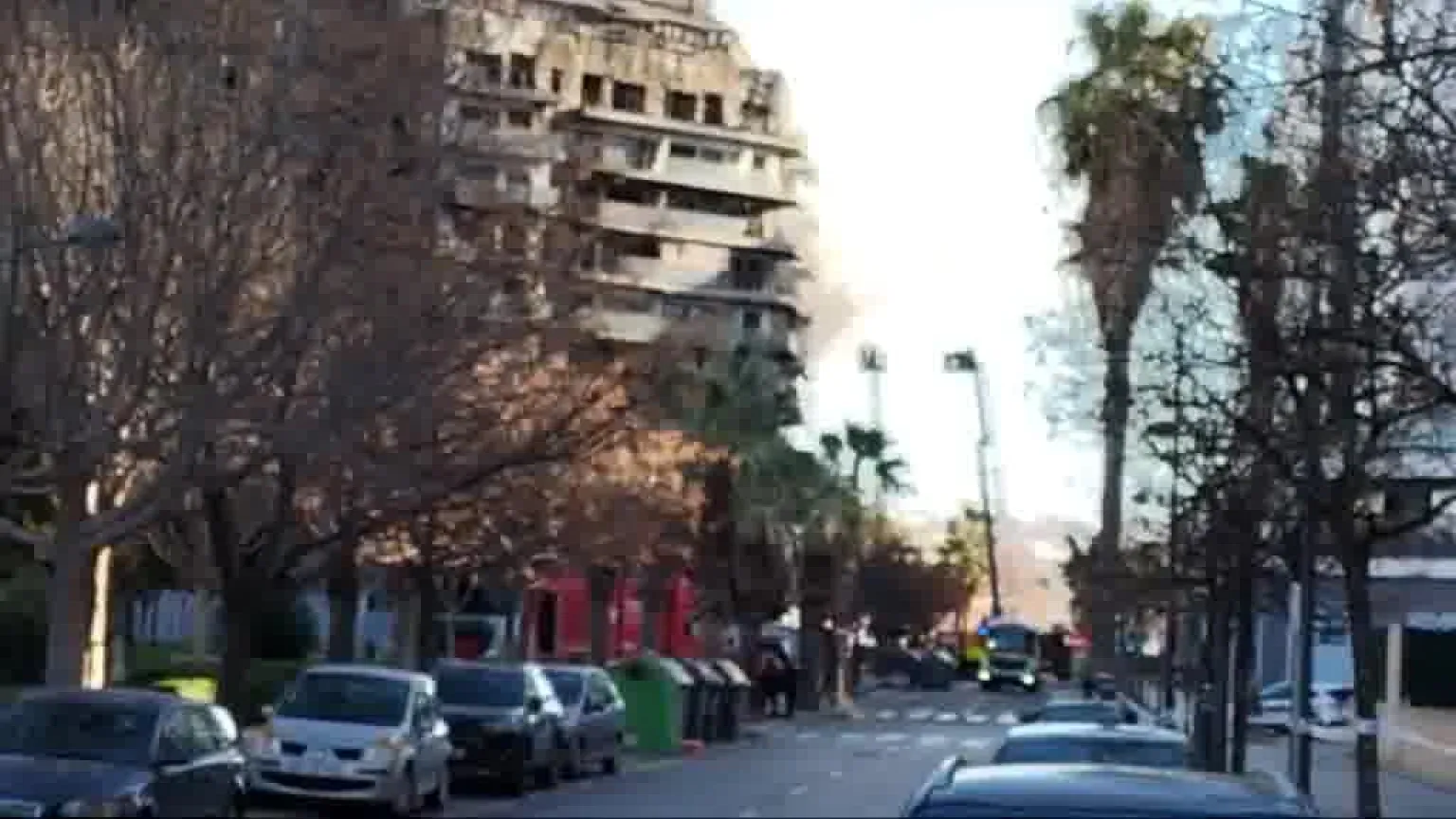 Efectivos de bomberos han permanecido toda la noche refrescando los edificios incendiados en la zona de Campanar de València, que a primera hora de esta mañana ya no presentaban llama.