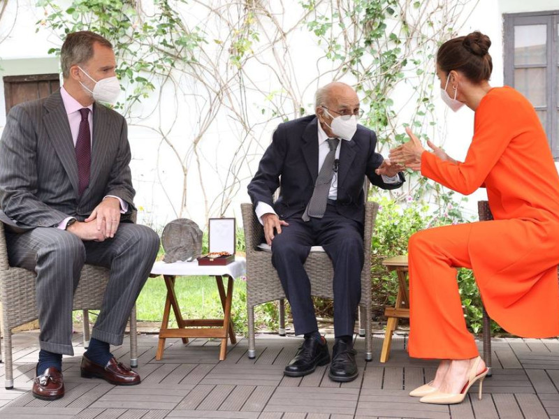 Los monarcas con el poeta valenciano Francisco Brines