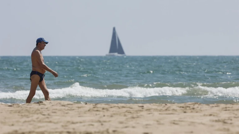 Un hombre camina por la playa de la Malva-rosa