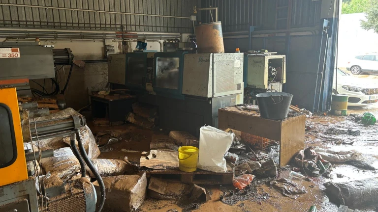 La empresa, dedicada a la inyección de plásticos y heredada por padre, quedó completamente inutilizada. De las siete máquinas con las que trabajaba, ninguna pudo salvarse. “Ya he mandado cinco a la chatarra y solo he podido comprar tres nuevas. Todo lo demás está perdido, no he podido rescatar nada”, lamenta.