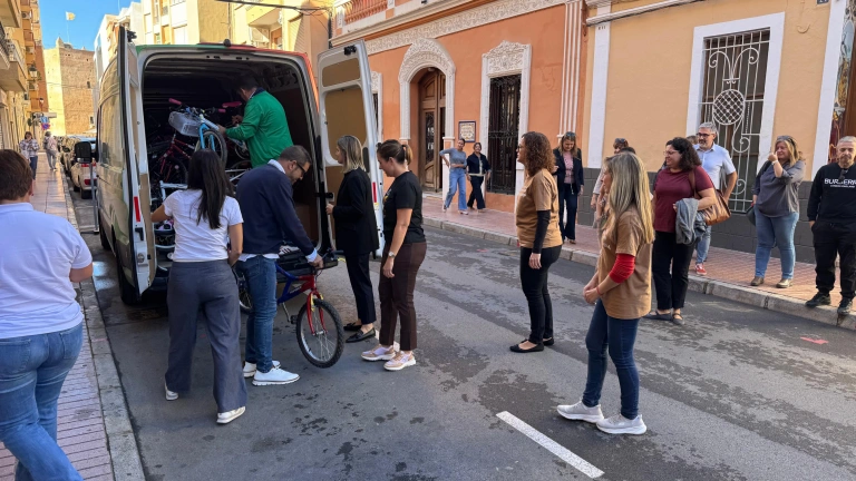 La directora de la fundación, Henar García, se ha desplazado con un equipo desde Madrid para trasladar las bicicletas a l’Horta Sud. Han sido donadas por personas de toda España y reparadas previamente en la nave que la entidad tiene en el municipio de Pinto, en Madrid, donde desarrolla la iniciativa “Bicis para la vida”.
