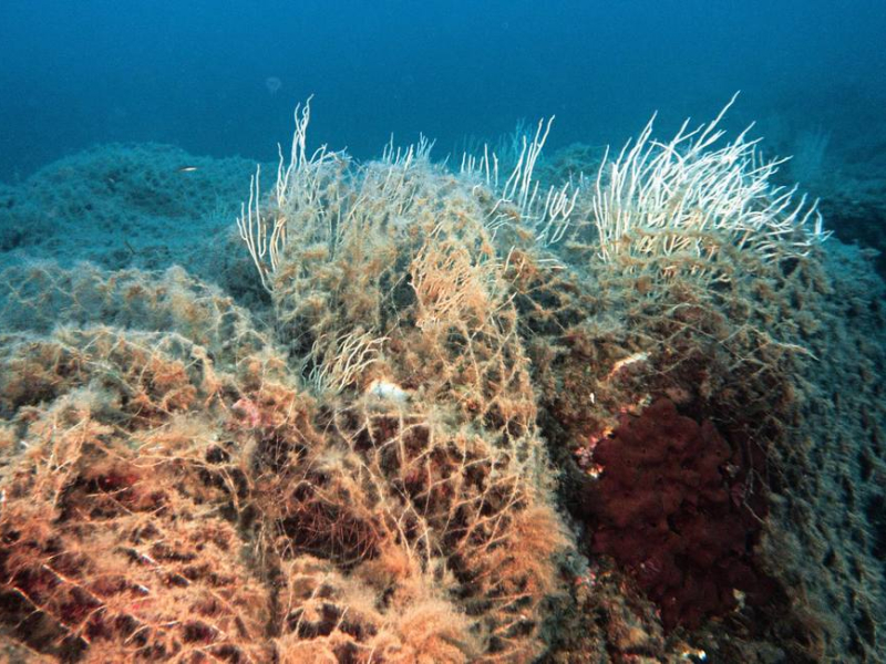 En el Mediterráneo, las redes fantasmas cubren áreas cada vez más grandes de paredes y fondos de rocas en las que causan una destrucción gradual de todas las formas de vida, especialmente corales y peces.