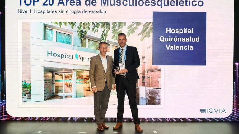 El hospital Quirónsalud Valencia ha recibido el premio Top 20 como mejor servicio en su categoría de traumatología en la actual edición de estos galardones que anualmente organiza IQVIA y que destacan la excelencia de la atención sanitaria de centros hospitalarios nacionales.