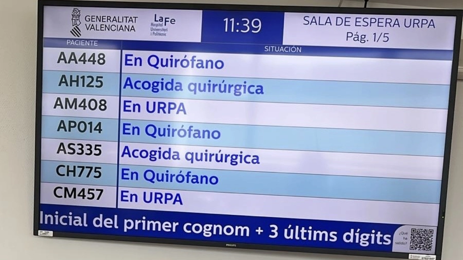 Sala de espera en el Hospital de La Fe en Valencia en el primer día de huelga