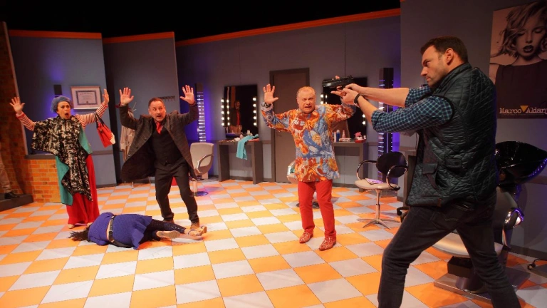 Esta es una comedia policíaca que trata sobre un asesinato con cuatro sospechosos y dos policías encerrados en una peluquería, en la que el público decide quién es el asesino. Así que podemos ir a verla más de una vez porque cada día hay un final diferente, muy al estilo “Imprebís” que no deja de sorprender en ninguna de las funciones. Si hay alguien que aún no ha ido a verla, tiene tiempo para disfrutarla en compañía hasta el 4 de agosto.