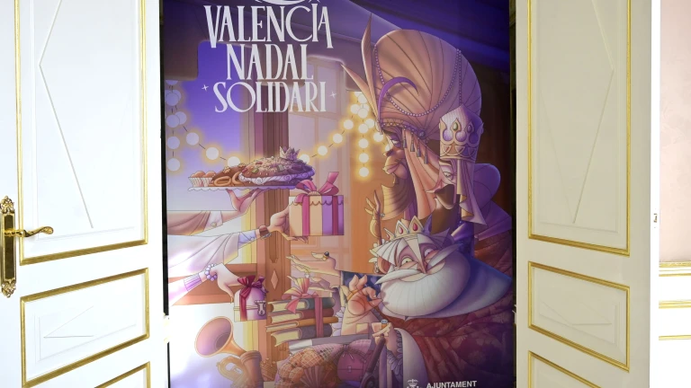 El cartel, que representa a los Reyes del Oriente ante el escaparate de una tienda, incluye regalos y productos tan diversos como libros, instrumentos musicales, dulces o indumentaria, entre otros productos típicamente valencianos, e incluye un cartel que reza “València, Navidad solidaria. El valor de estar cerca de ti. Compra en el comercio local”.