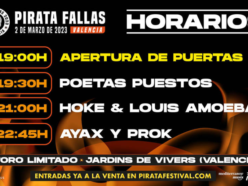 Esta segunda edición de Pirata Fallas abrirá sus puertas a las 19.00 horas para hacer vibrar al público valenciano durante más de cinco horas de música urbana. Puedes adquirar las entradas en piratafestival.com