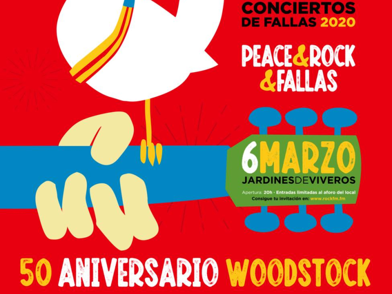 RockFM te presenta los conciertos de Fallas 2020 con la celebración del 50º Aniversario del gran hito musical Woodstock. Un concierto único para el que se ha confeccionado una banda de músicos de primera línea así como cantantes de diferentes formaciones que se unirán para tocar y cantar temas que sonaron hace 50 años. Podremos disfrutar de Joe Cocker, Janis Joplin, The Band, The Who o Jefferson Airplane entre otros muchos.