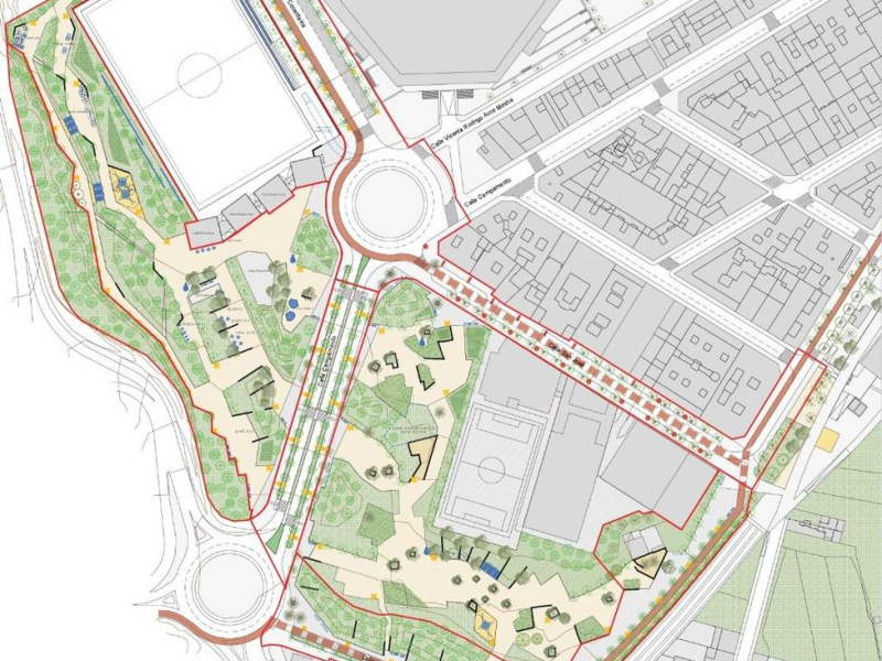 El resto de espacios del parque, a desarrollar en fases posteriores, mantienen la preexistencia de las antiguas cuevas, recuperando la memoria patrimonial del pueblo e integrándola en el nuevo jardín, donde además se fomentan los usos colectivos y de recreo, con zonas de juego, biosaludables, o deportivas. Así, sobre el espacio de detrás del velódromo, en la calle Cocentaina, se ubicará el nuevo campo de fútbol y albergará también zonas de escalada y otras instalaciones deportivas.
