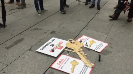 Empresarios del ocio entregan llaves de sus negocios a la Generalitat en un acto simbólico