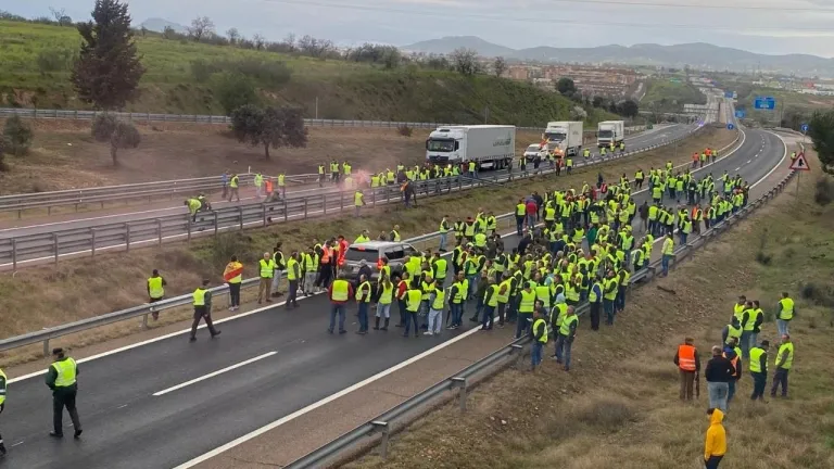 Más de un centenar de agricultores corta la A-5 y busca entrar en Mérida como respuesta a Osuna
