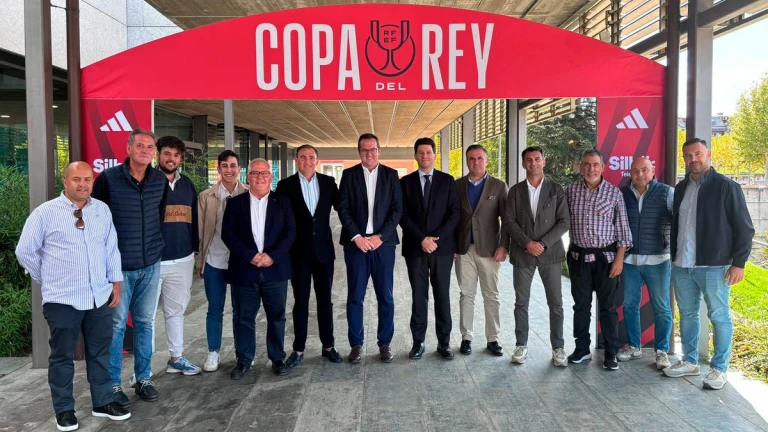 Representación de los clubes extremeños con el presidente de la Federación Extremeña en el sorteo de Copa