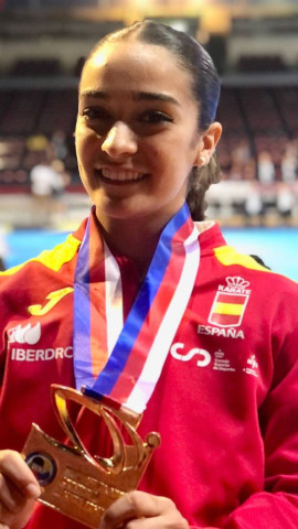 La karateca almendralejense se asegura la medalla de plata y luchará por el título ante la belga Chiara Manca