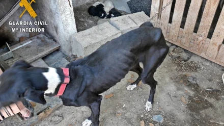 Albergaba cinco perros adultos y cinco cachorros en una parcela del mismo término municipal con evidentes síntomas de desnutrición y condiciones precarias de salubridad