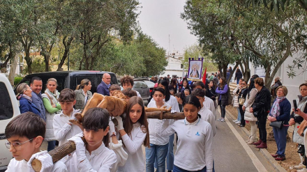 La Semana Santa de Almendralejo arrancó este viernes con la procesión de la comunidad educativa del colegio Santo Ángel