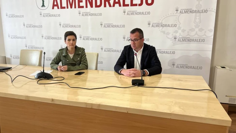 La concejala Raquel del Puerto y el secretario general de la Federación Extremeña de Fútbol, Sergio Merchán, han presentado este jueves la fase de ascenso a la Segunda RFEF que tendrá lugar los días 30 de abril, 1 y 8 de mayo en el estadio Francisco de la Hera de Almendralejo.