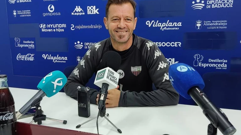 El técnico del Extremadura, Manuel Mosquera, se ha referido a preguntas de la prensa al acuerdo del club con los jugadores para desconvocar la huelga.