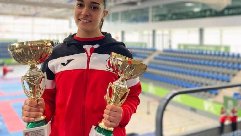 Paola García Lozano ha logrado dos trofeos en el Campeonato de Karate de Madrid de clubes que está teniendo lugar en Boadilla del Monte. La karateca almendralejense, que en este campeonato representa al Karate Kumo Sport, su club en Madrid, se ha colgado la medalla de oro por equipos de tres integrantes y la medalla de plata en la categoría de seis integrantes.