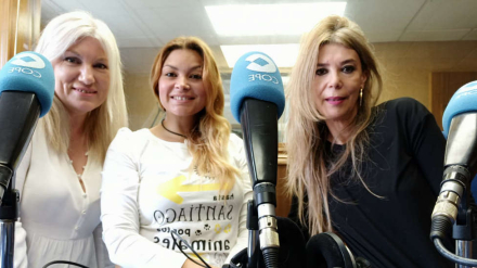 La pequeña Cayetana y María Dolores en los estudios de Herrera en COPE Badajoz