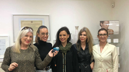 La doctora Gema Vacas y la Técnico en Estética Sonia Gastón con el equipo de Herrera en COPE Badajoz