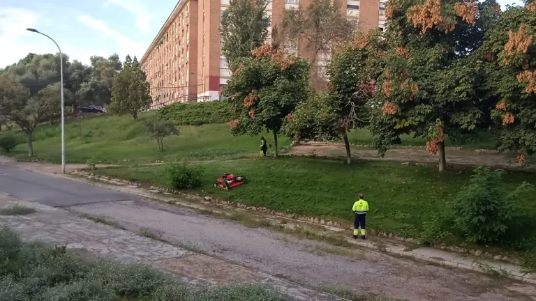 Un innovador elemento se ha colado entre el material que usan operarios de Parques y Jardines: mando a distancia para controlar un cortacésped que actúa en lugares difíciles.