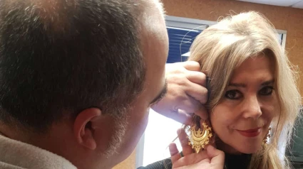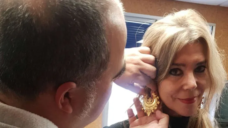 Lale Ortiz se prueba los pendientes "Media Luna" o "Brasero" de la mano de Joaquín Sancha.