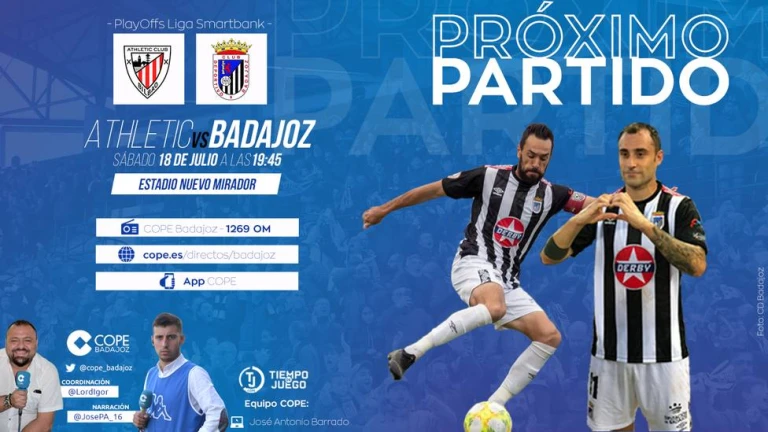 COPE no podía faltar a la cita. Dos temporadas cubriendo la información completa del CD Badajoz, sin perderse a una salida del equipo pacense, debía estar ahí y así será. El equipazo de Tiempo de Juego estará en la comunidad andaluza, encabezado por José Luis Lorido y José del Pozo, quienes llevarán a sus casas los partidos que juegue el conjunto blanquinegro en este PlayOff exprés ideado por la Federación Española de Fútbol que no podrá tener público en sus gradas. Además de los partidos, habrá programación especial, directos y sorpresas desde la Costa del Sol, donde se disputará el grueso de las eliminatorias.