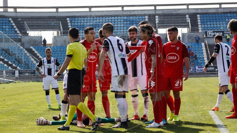 Cristian Pérez y Julio Cidoncha discuten con los jugadores del San Fernando