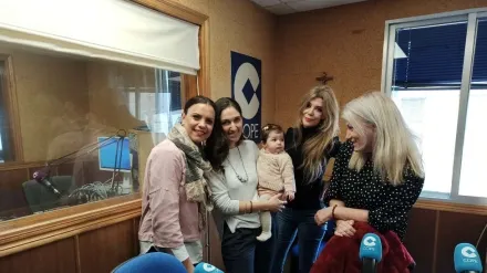 La pequeña Cayetana y María Dolores en los estudios de Herrera en COPE Badajoz
