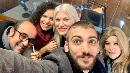 Noelia Teba y Joaquín Sancha con el equipo de Herrera en COPE Badajoz