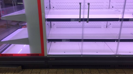 Las fotografías lo dicen todo: estanterías y lineales vacíos. Es la consecuencia directa de la huelga de transportistas en la ciudad de Badajoz.