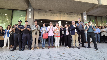 Una concentración frente a la oficina del INSS en Badajoz, a la que se han unido representantes políticos, se convierte en el altavoz de la rabia de unos compañeros de trabajo que hoy no podían, ni querían, hacer como si nada hubiera pasado.