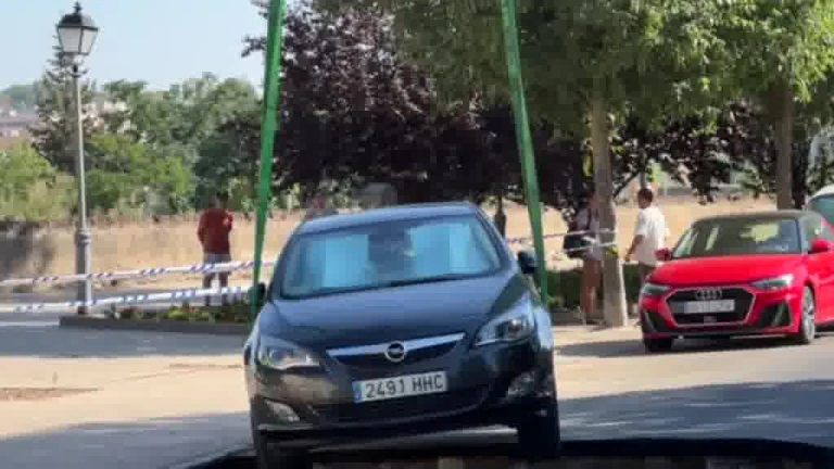 Los servicios municipales han tenido retirar un automóvil que había quedado balanceándose en el vacio. Un corrimiento de tierras por una fuga de aguas parece ser el motivo.