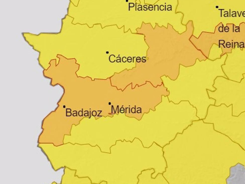 La alerta en Vegas del Guadiana y Villuercas y Montánchez es ahora de color naranja
